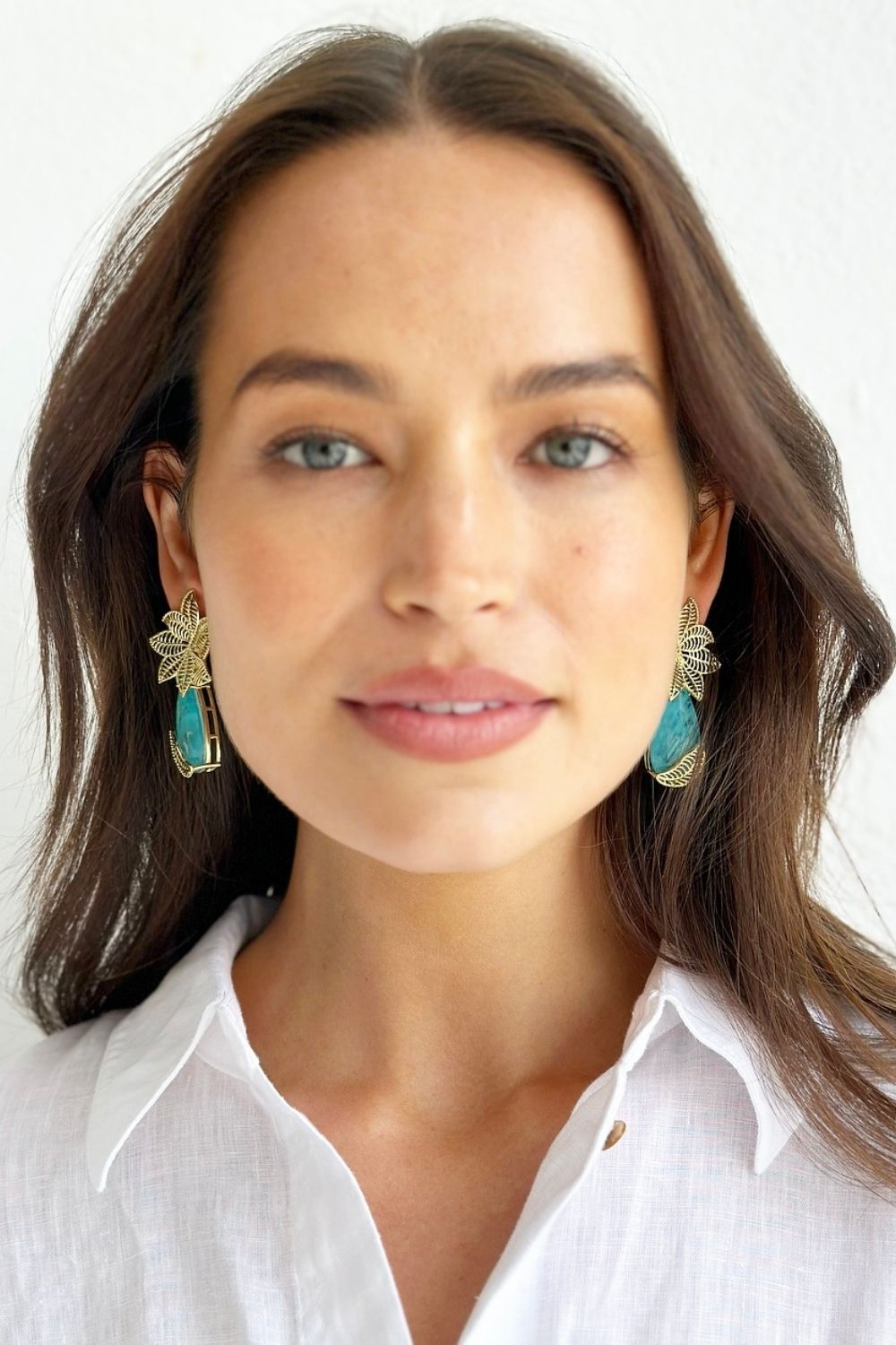 Add a touch of elegance to your look with these stunning Amethyst Palm Earrings. Featuring a beautiful combination of gold and aquamarine, these earrings are perfect for any occasion, whether you’re dressing up for a night out or adding a bit of sparkle to your everyday outfit.