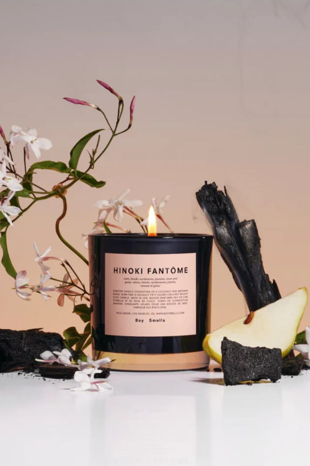 Boy Smells Hinoki Fantôme... the resinous combination of sacred Japanese cypress and jasmine petals are uniquely wrapped in rich amber glow. Warm and meditative with an element of earthy spice and soft woodland moss. Best described as complex, balanced, and meditative, studies note hinoki's vibrant timber can induce physiological relaxation. A best seller and absolute year-round necessity to invigorate the senses.
