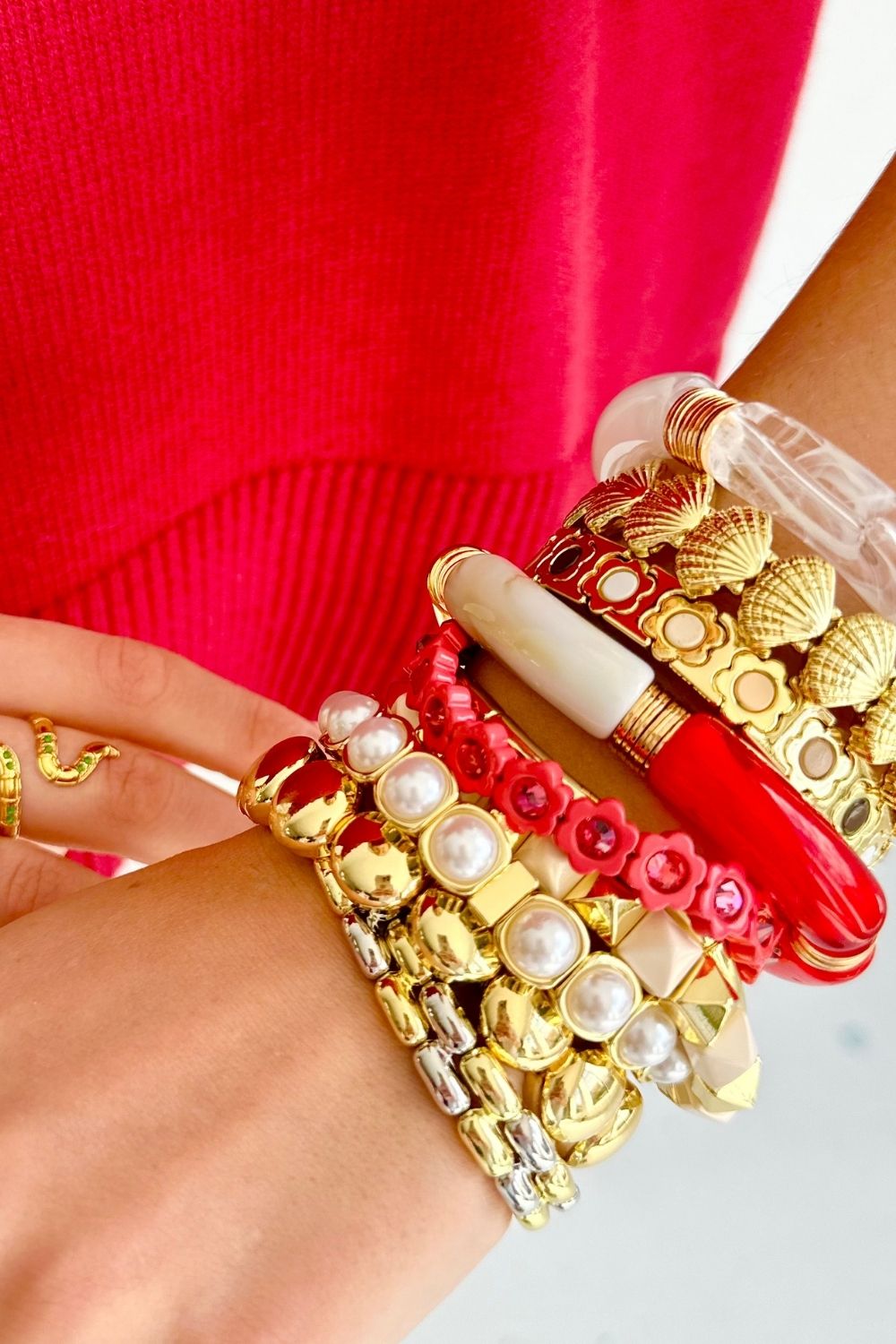 Add a bold splash of gold, marble and red to your accessory collection with this Chunky and sophisticated bracelet.