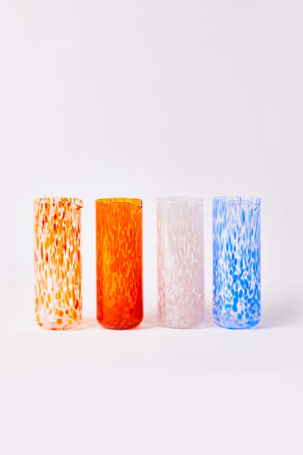The Dots Orange carafe is made from hand blown glass featuring specks of opaque and clear coloured glass. Designed to complement our Dots tumblers, this beautiful carafe looks at home on your dining table, desk or bedside table!