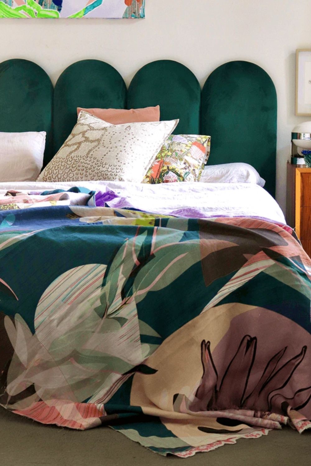 And its all in the little details so carefully considered... natural raw double layer edging with neon stitching, and a layer of gold lurex thread zig zagging the perimeter and working its way around the ovoids quilting the sides together... and lastly a cute little contoured gum nut trim along one edge. All Sarah's favourite little details brought together in this liveable work of art.