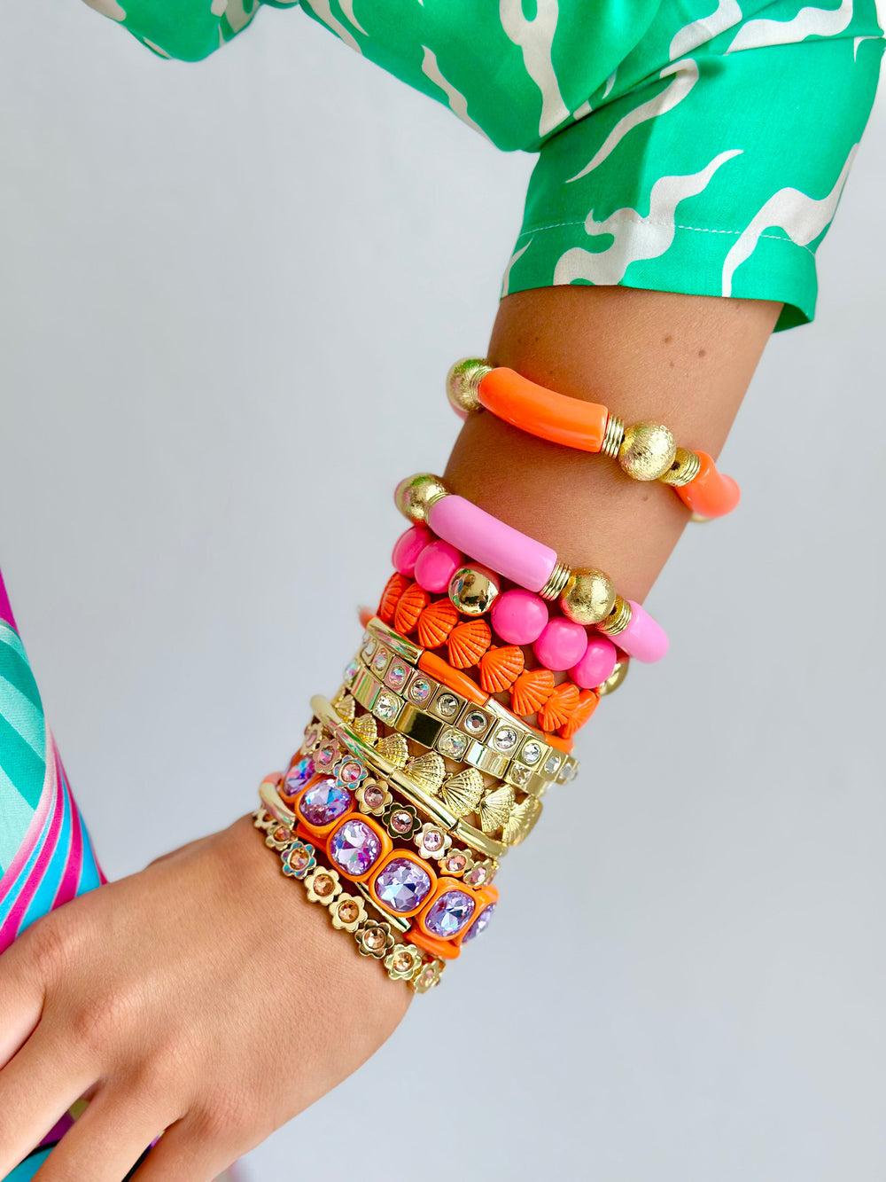 These bracelets are all about fun and flair, featuring a glossy enamel finish that adds a pop of fab to any outfit.