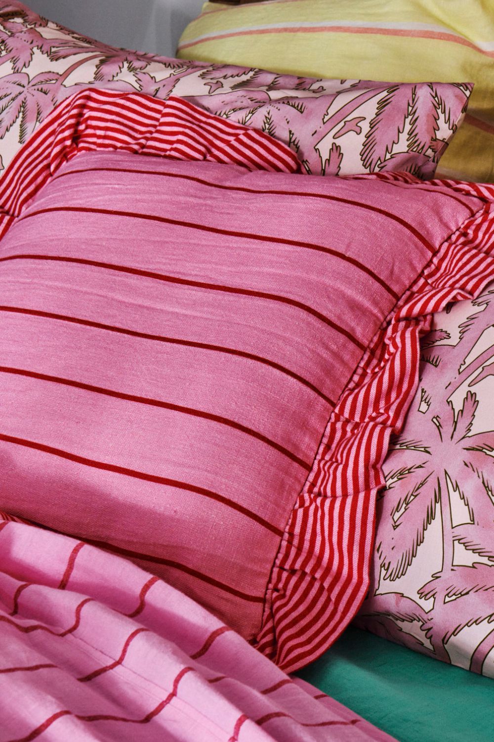 Style any space with ease with our vast range of cushions and soft furnishings. Add an instant injection of colour and texture by pilling up the pillows and layering away, it's all about accessorising! The Iced Vovo Stripe Frill Upholstery Cushion is sugary sweet featuring a candy marshmallow pink base and jammy red stripe with a luscious frilled edge.