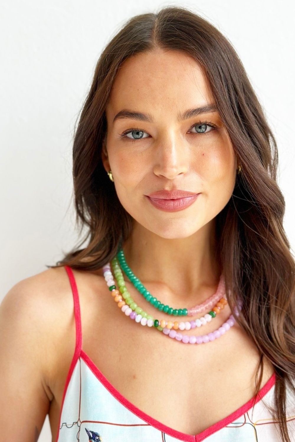 Embrace the calming beauty of our Jade and Lilac Gem Necklace. This enchanting piece features a harmonious blend of jade and lilac gemstones, each carefully selected to create a necklace that radiates elegance and serenity. Perfect for adding a touch of sophistication to any outfit, this necklace is a timeless addition to your jewelry collection.