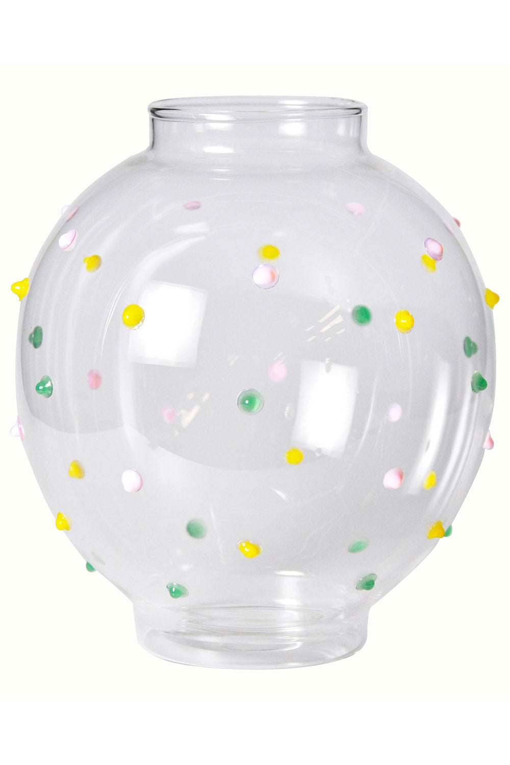 Made from handblown glass and featuring pastel textured polkadots on a transparent clear glass the Smartie Partie Fish Bowl Vase is a voluptuous vase worth vying for. Bulbous and beautiful, add a Kip&Co candle and a pretty bunch of blooms for a gorgeous styling moment.
