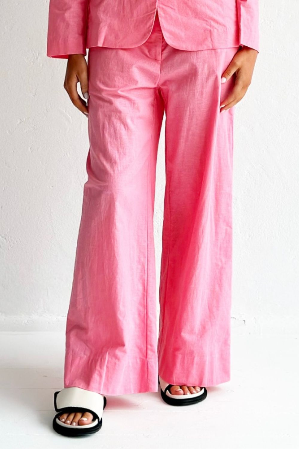 Made cotton linen blend, these wide leg pants have a sleek and sophisticated silhouette. Zip fly and a button front make them easy to slip on while the side and back pockets make them practical as well as fashionable.
