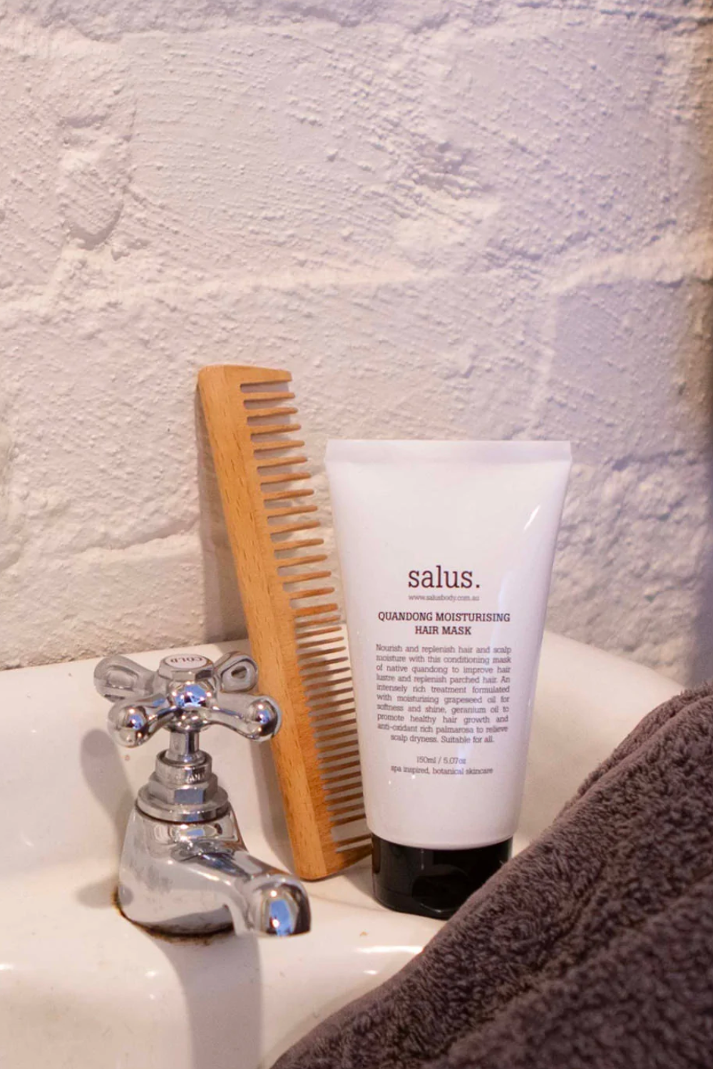 Nouish and replenish hair and scalp moisture with this conditioning mask of native quandong to improve hair lustre and rejuvenate parched hair. An intensely rich treatment formulated with moisturising grapeseed oil for softness and shine, geranium oil to promote healthy hair growth and anti-oxidant rich palmarosa to relieve scalp dryness. Suitable for all.