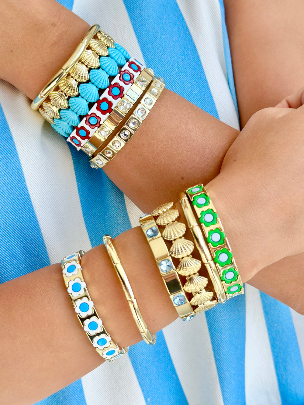 These bracelets are all about fun and flair, featuring a glossy enamel finish that adds a pop of fab to any outfit.