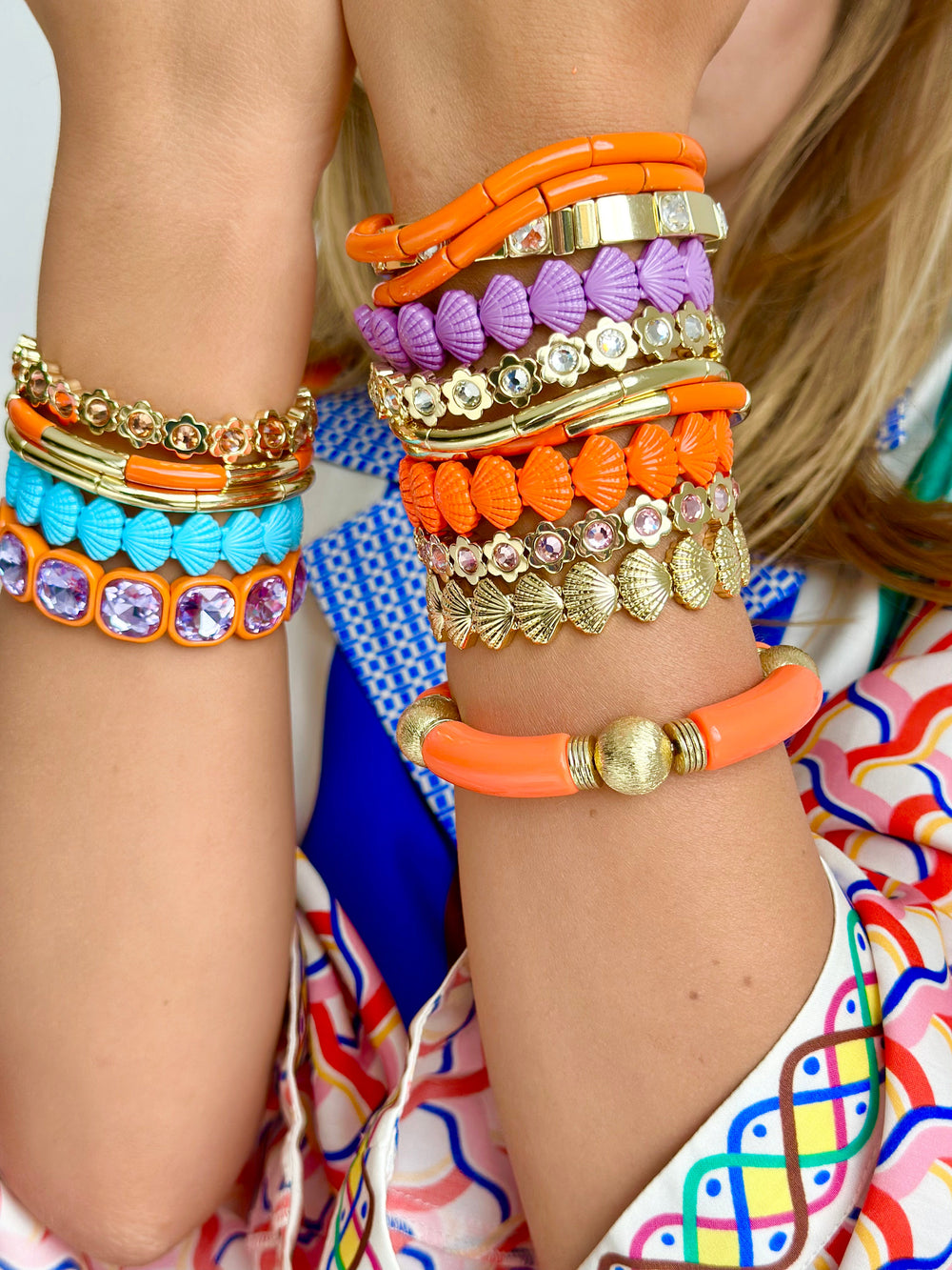 These bracelets are all about fun and flair, featuring a glossy enamel finish that adds a pop of fab to any outfit.