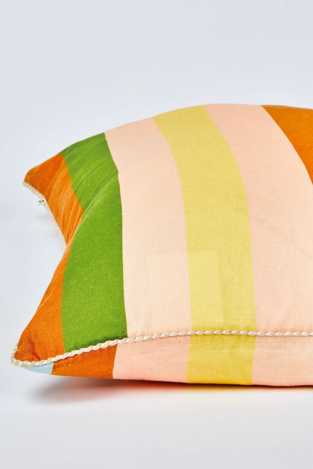 The new bonnie and neil Stripe Pastel Multi 60cm cushion features original artwork by Bonnie printed on linen. The reverse of the cushion features the same design.