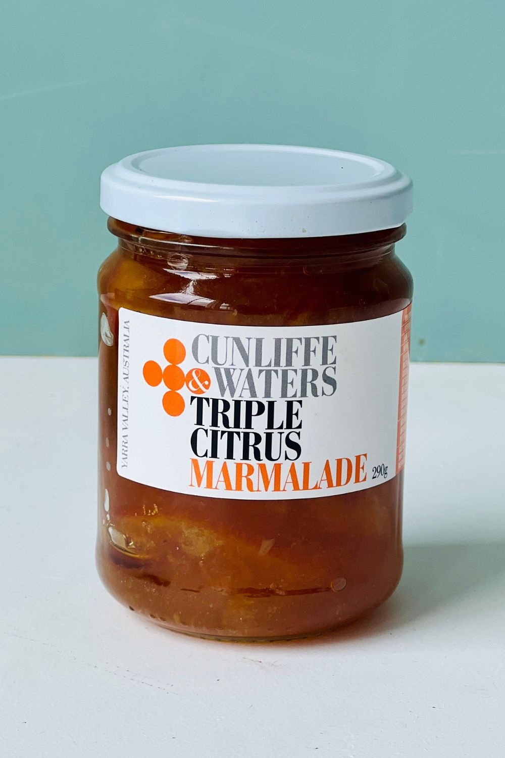 Our marmalades are thick with fruit, as they should traditionally be. A classic blend of orange, lemon, and grapefruit, this bitter marmalade is perfect on a buttery crumpet or stirred with mustard as a glaze for ham.