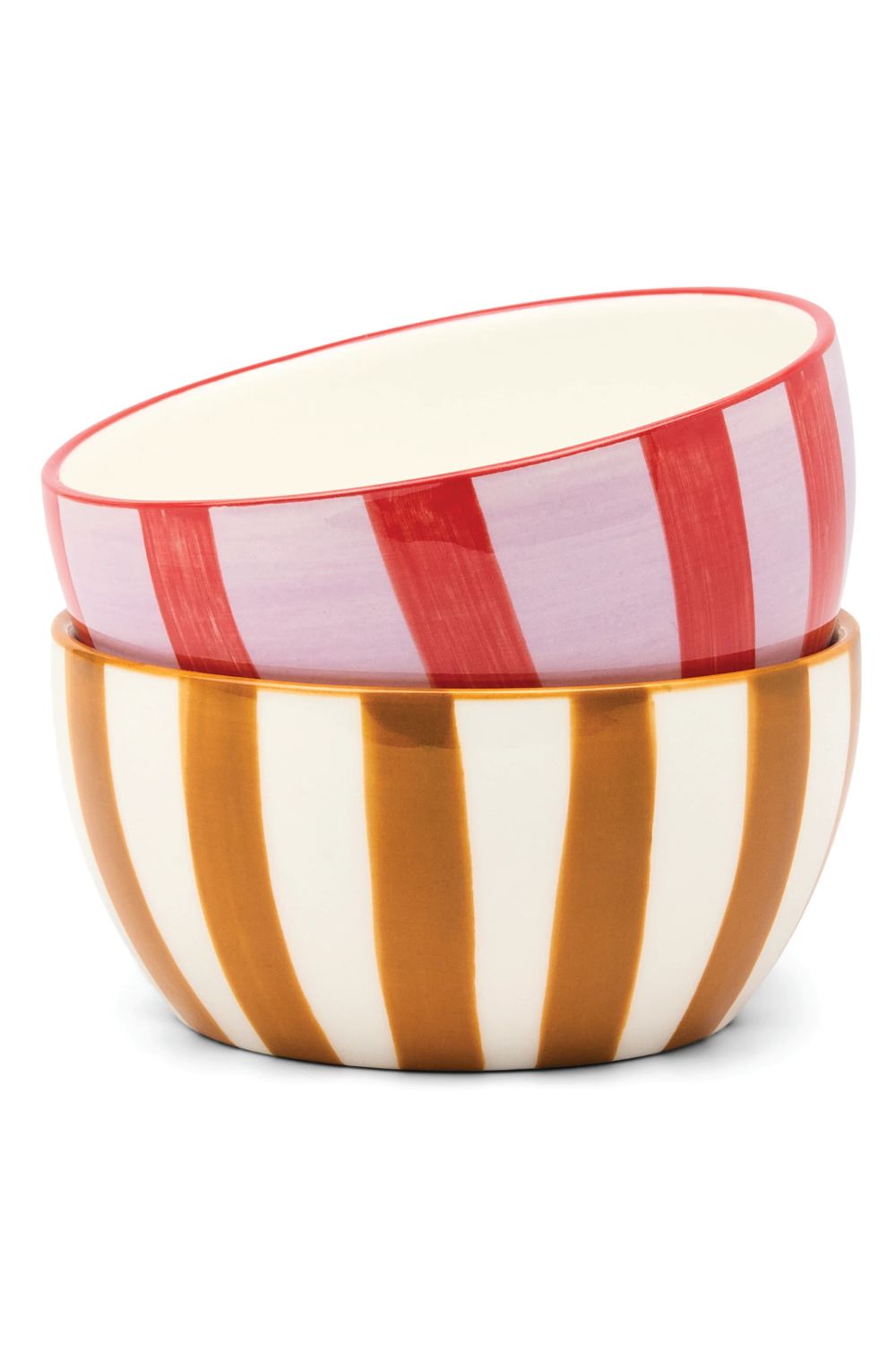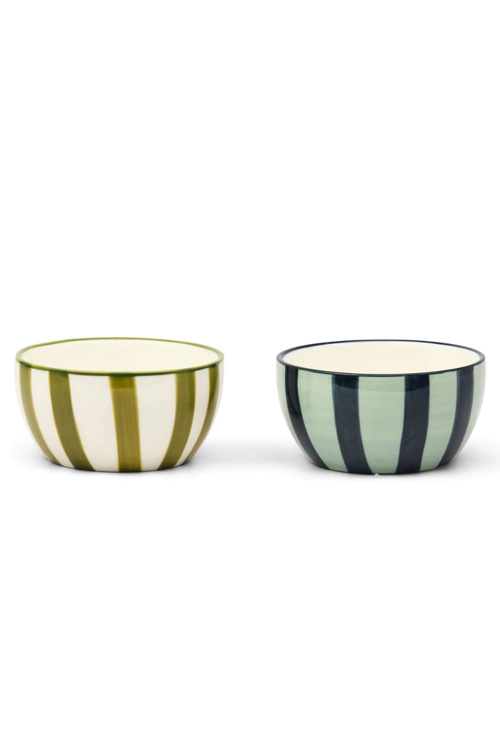 The Bella Set of 2 Dipping Bowls Green and Blue Stripe