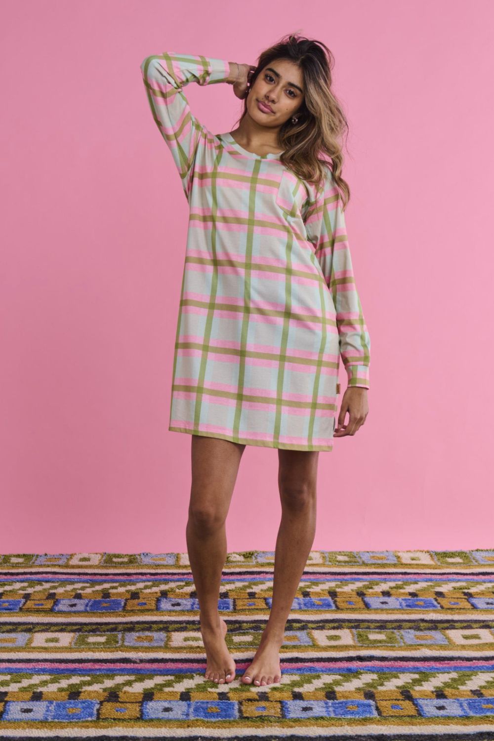 Pistachio Tartan Organic Cotton Long Sleeve Nightie