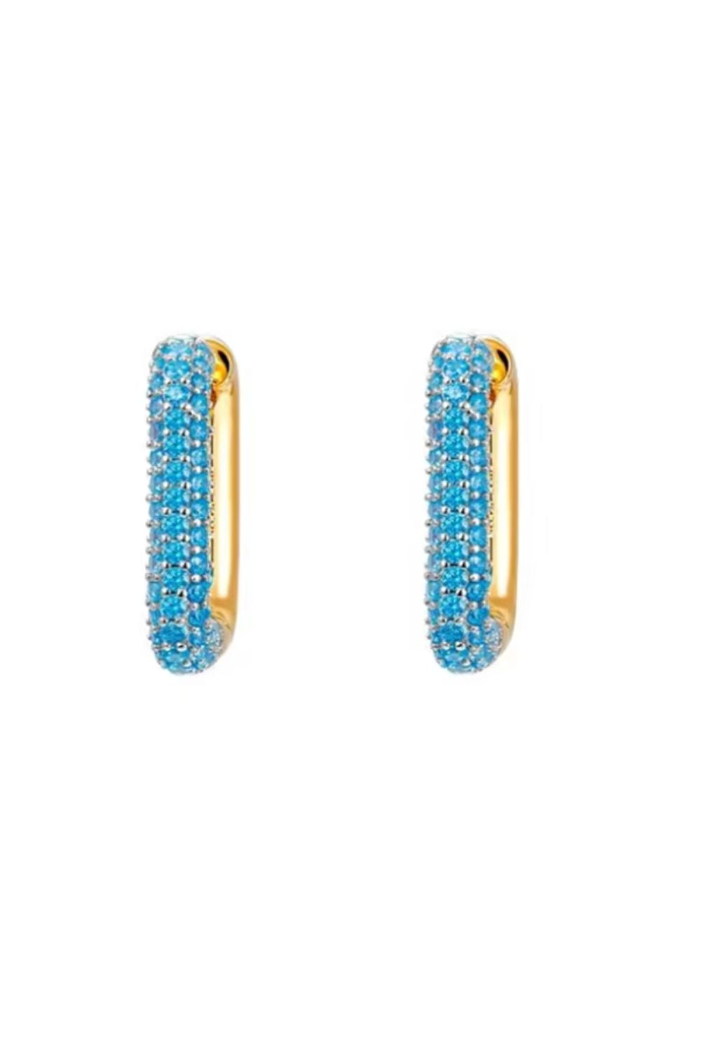 Gorgeous gold hoops encrusted with turquoise diamontes.