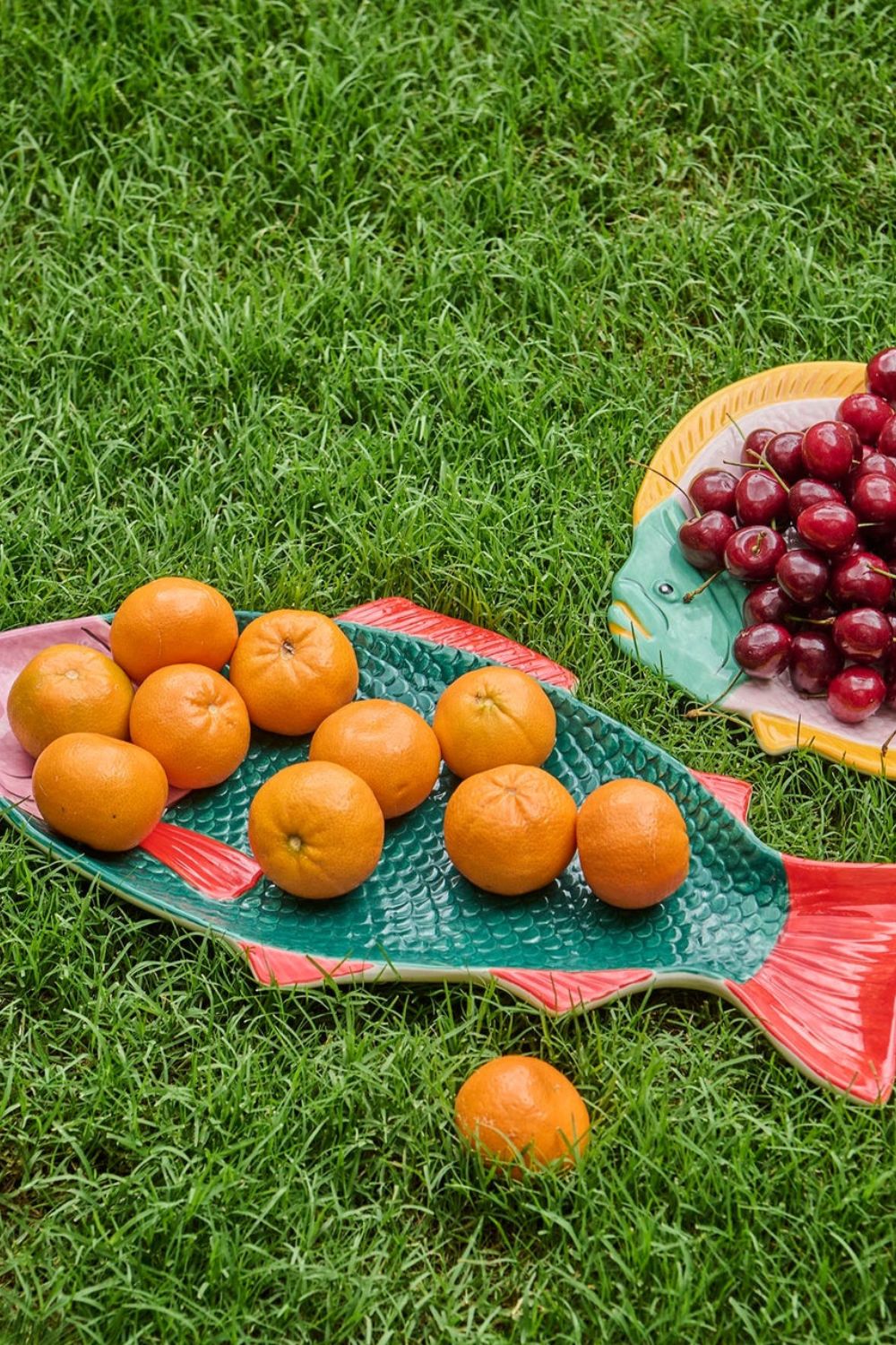 From sea to serving! The Solomon Fish Serving Dish, painted in a deep green with fiery red fins, is your ticket to instant coastal charm. Perfect for piling with fresh seafood, crisp salads or tropical fruit, this cheerful fish-shaped platter brings the carefree spirit of an island escape straight to your table.
