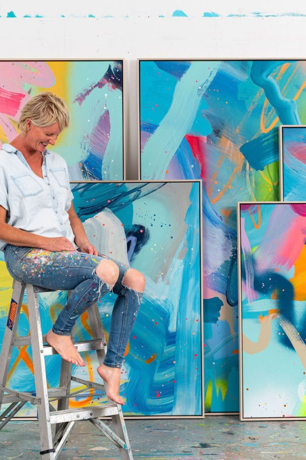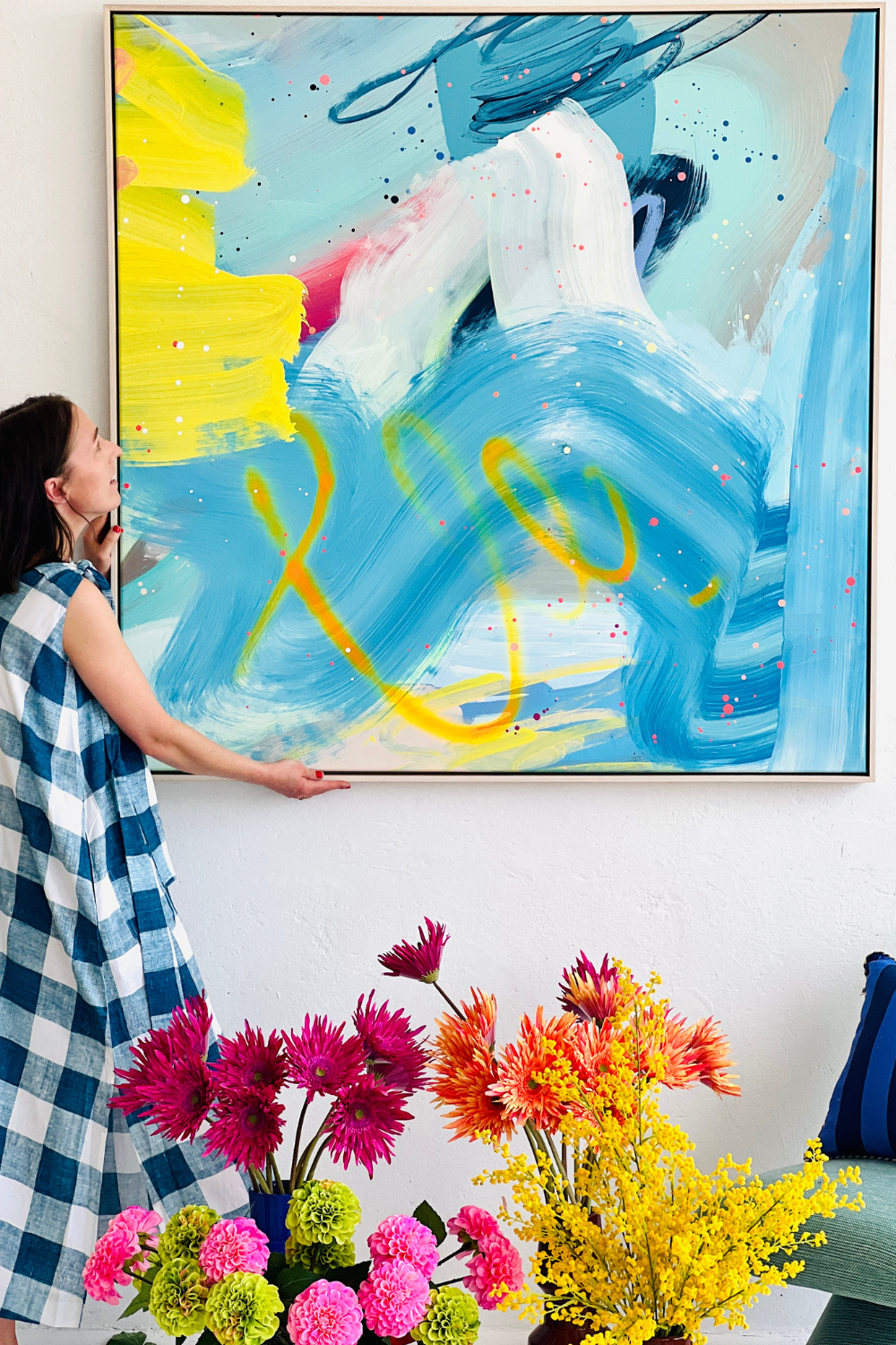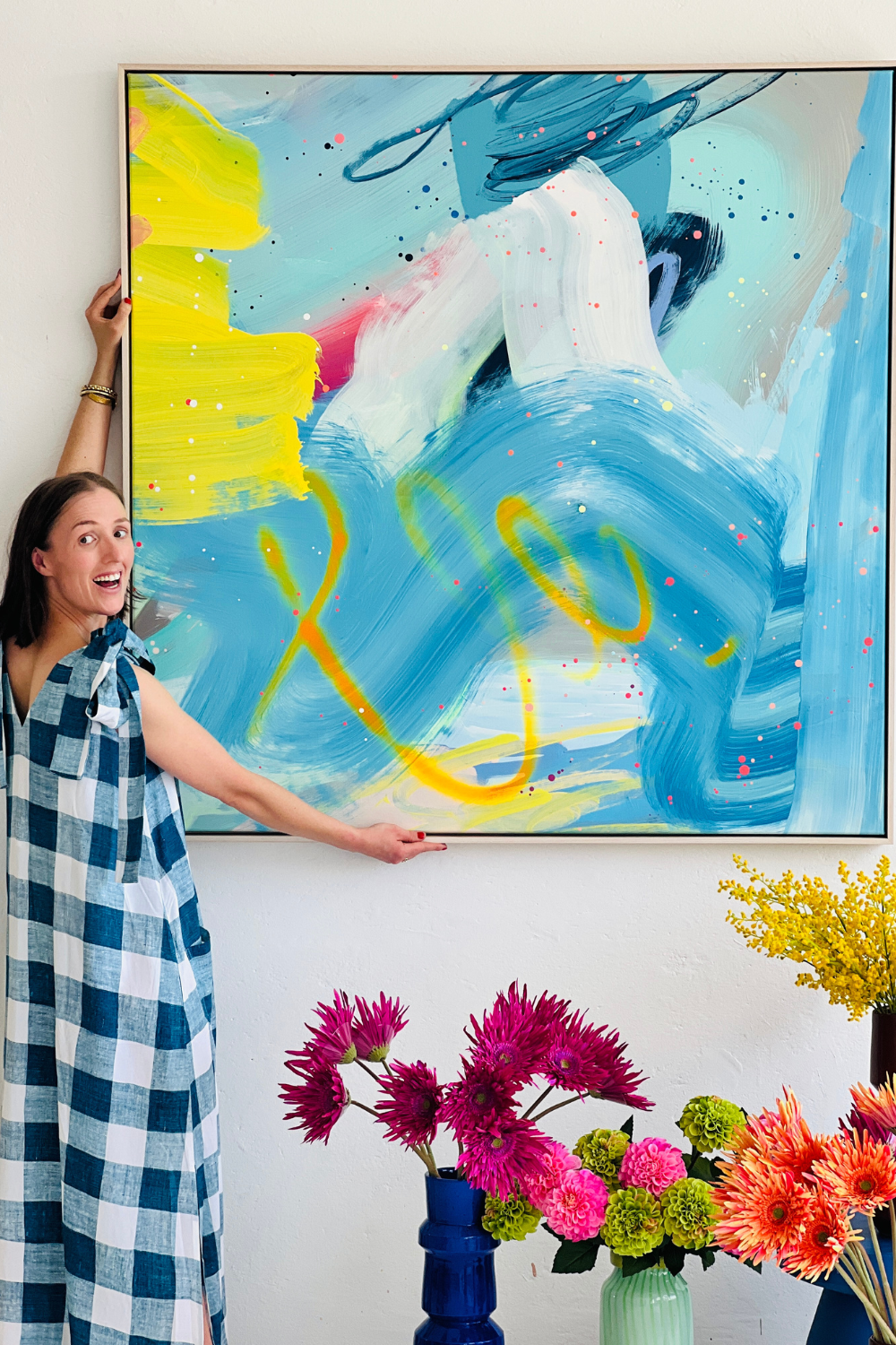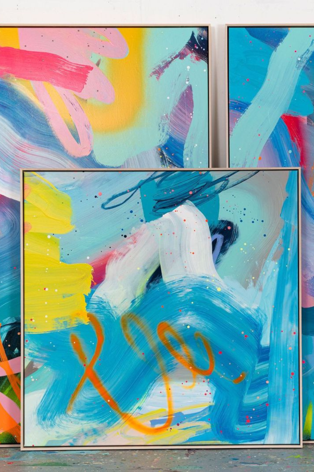 Acrylic on canvas 131.4 x 131.4cm, Framed in whitewashed oak