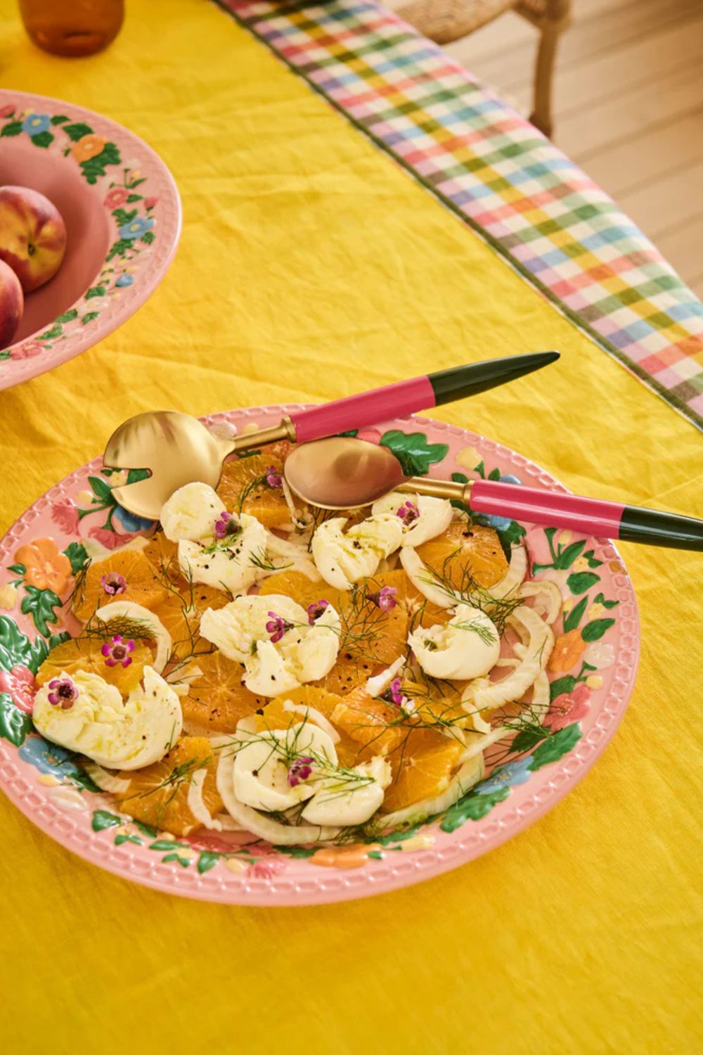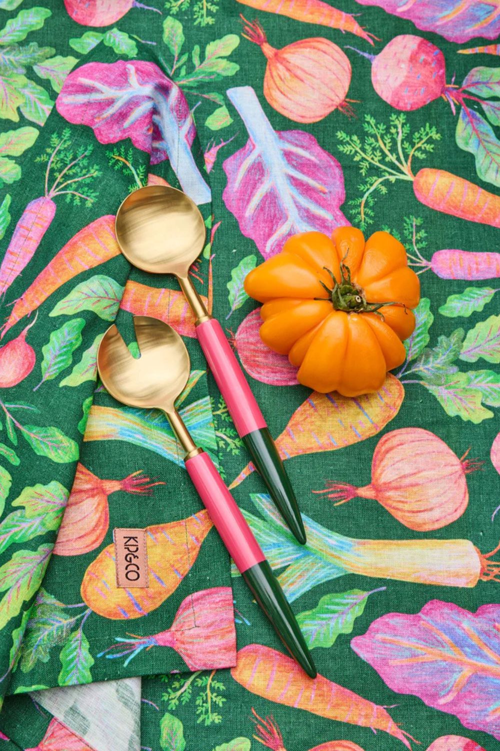 Our classic Kip serveware is back, reimagined in brand new colours made for long summer feasts! The Tuscan Days Brasserie Salad Servers bring a bold pop to your table, with deep pink handles and forest green ends. Designed for dishing up hearty salads and side plates with ease, this duo is as practical as it is punchy. Summer is the season of salads, so serve them fresh, fun, and full of flair!