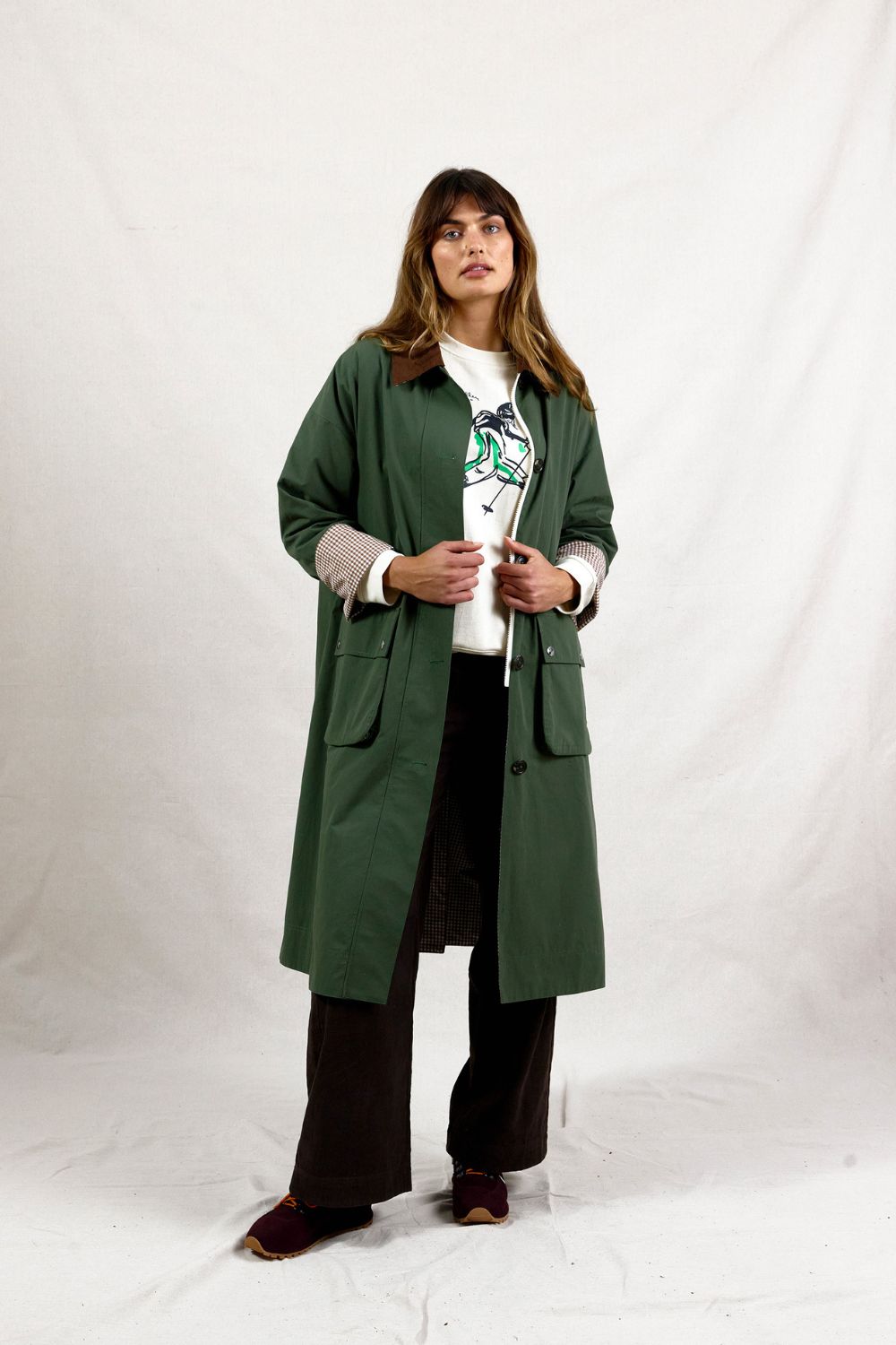 Knick Nack CRACKENBACK give a lady a trench coat. Oh we love a winter coat, ALOT. We gave you the gingham puffer and now we raise you into the khaki green classic essential coat of arms. Cutest chocolate gingham lining for the win. It's actually the piece de gingham absolutely no resistance. As if you are super keen you could also reverse this one out. Purposely oversized so you can layer up as it cools down. Ready to *weather* any occasion. Add corgis, headscarf, Landrover, thoroughbreds & a crown.