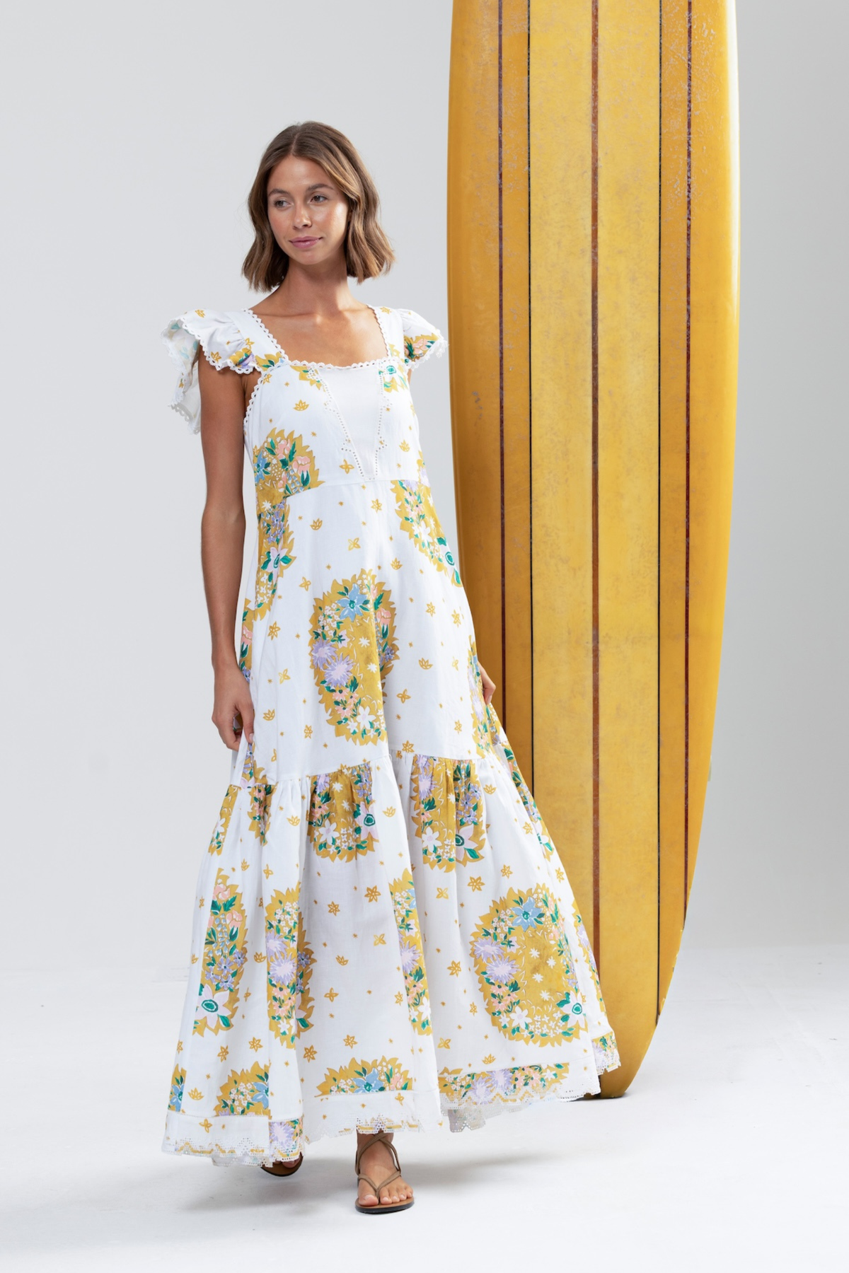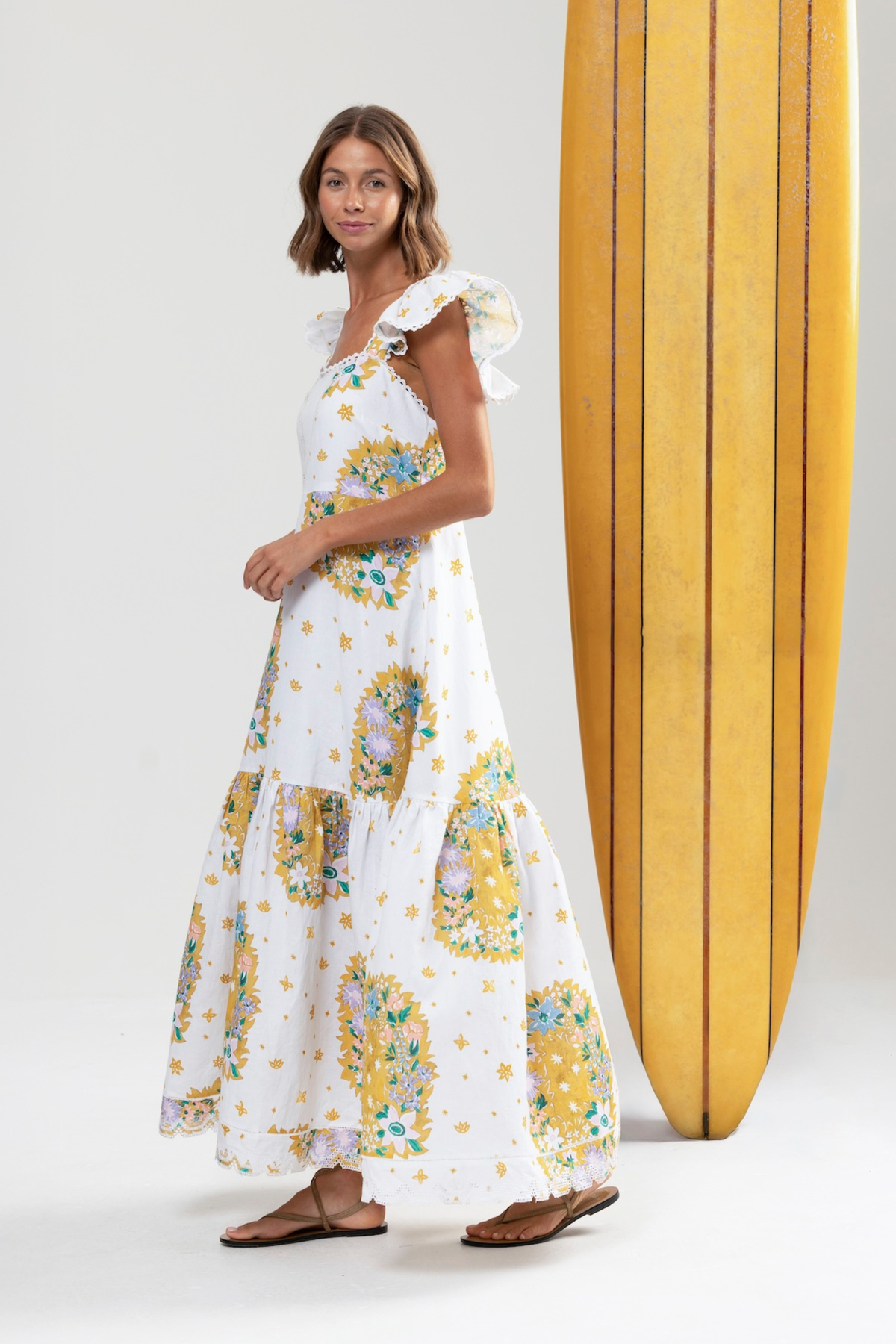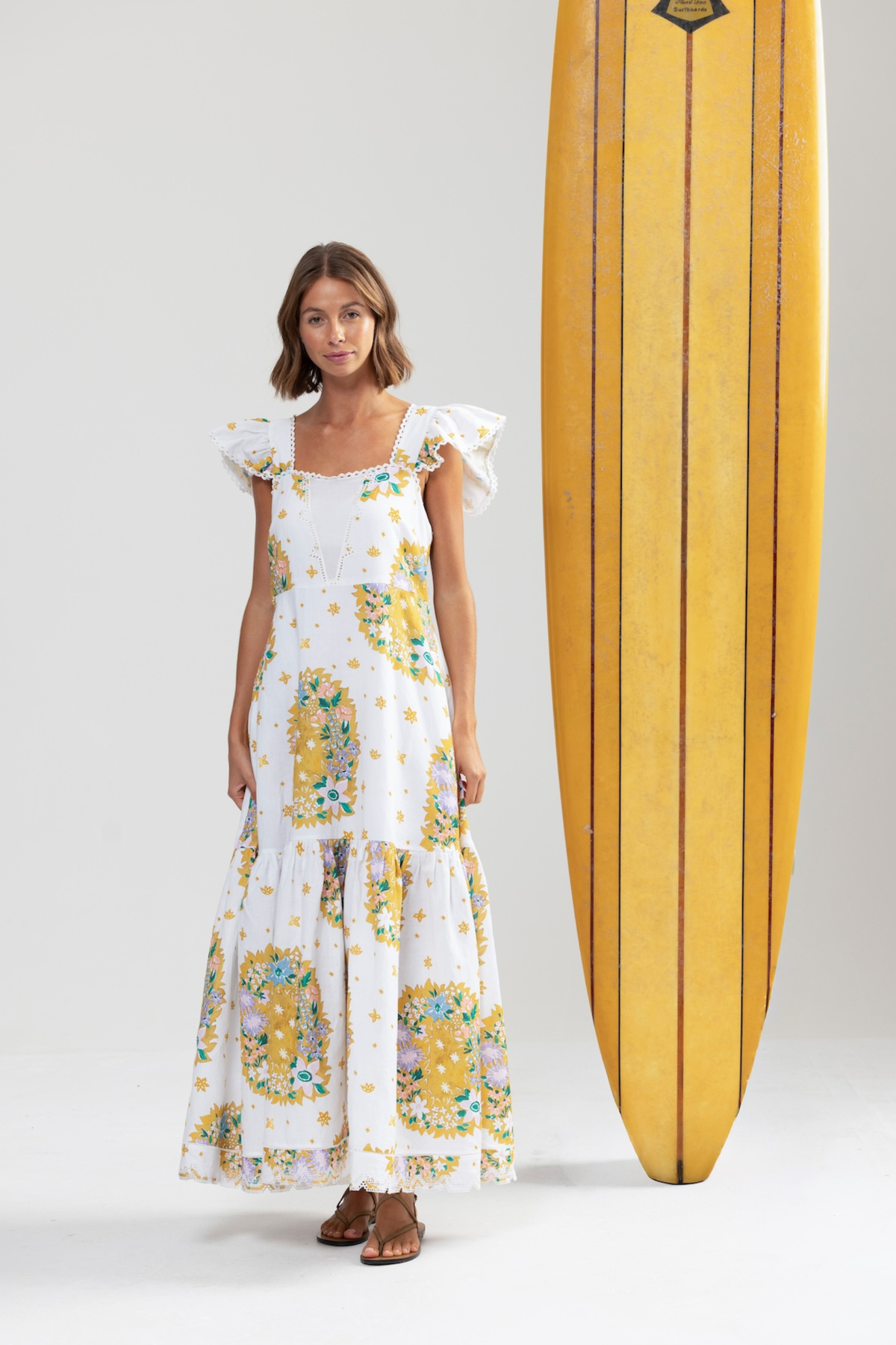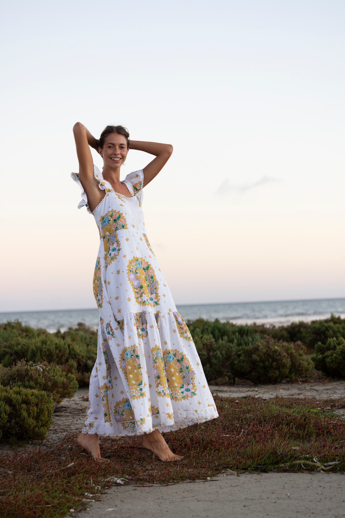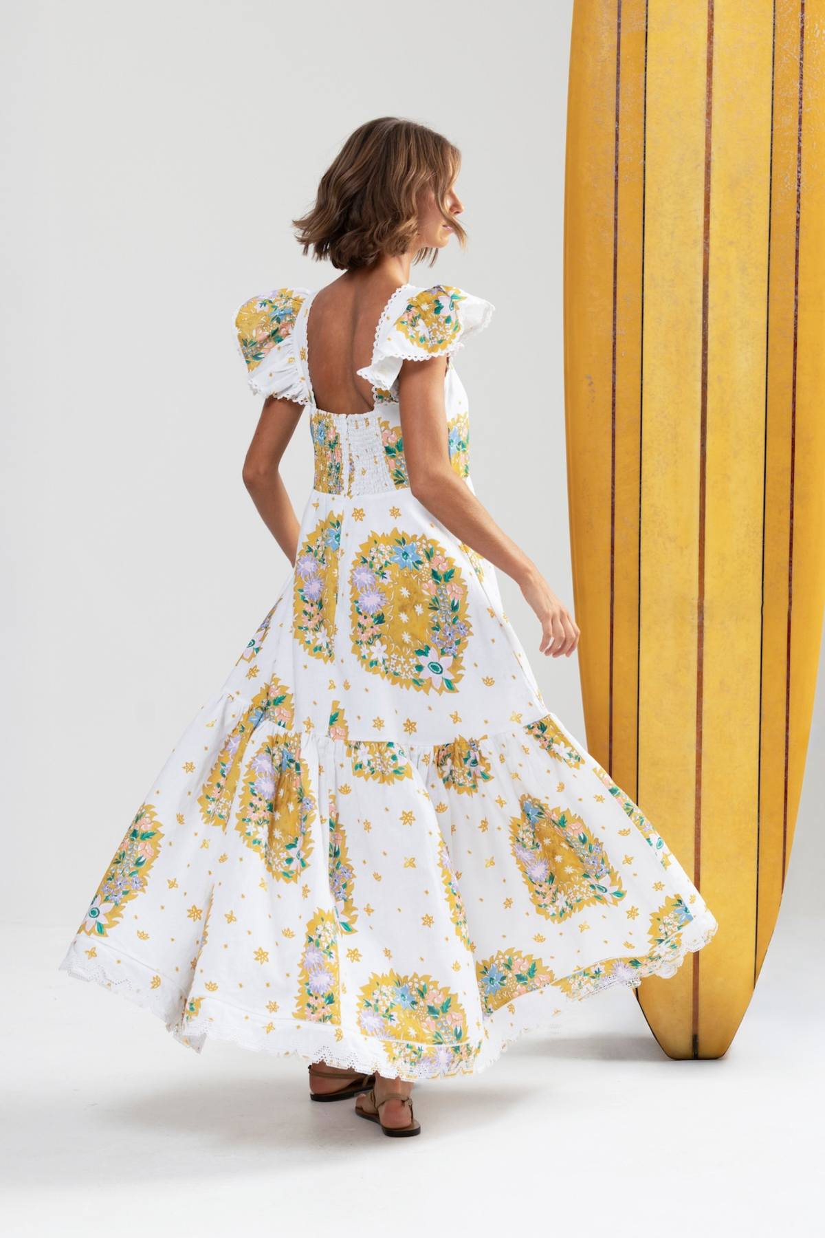 RAES is a love letter to the Aussie summer. Garden-print cotton poplin, delicate embroidery, and sleeves made for twirling. With a shirred back and removable waist tie, it’s just as happy at the beach bar as it is on the lawn with bare feet.